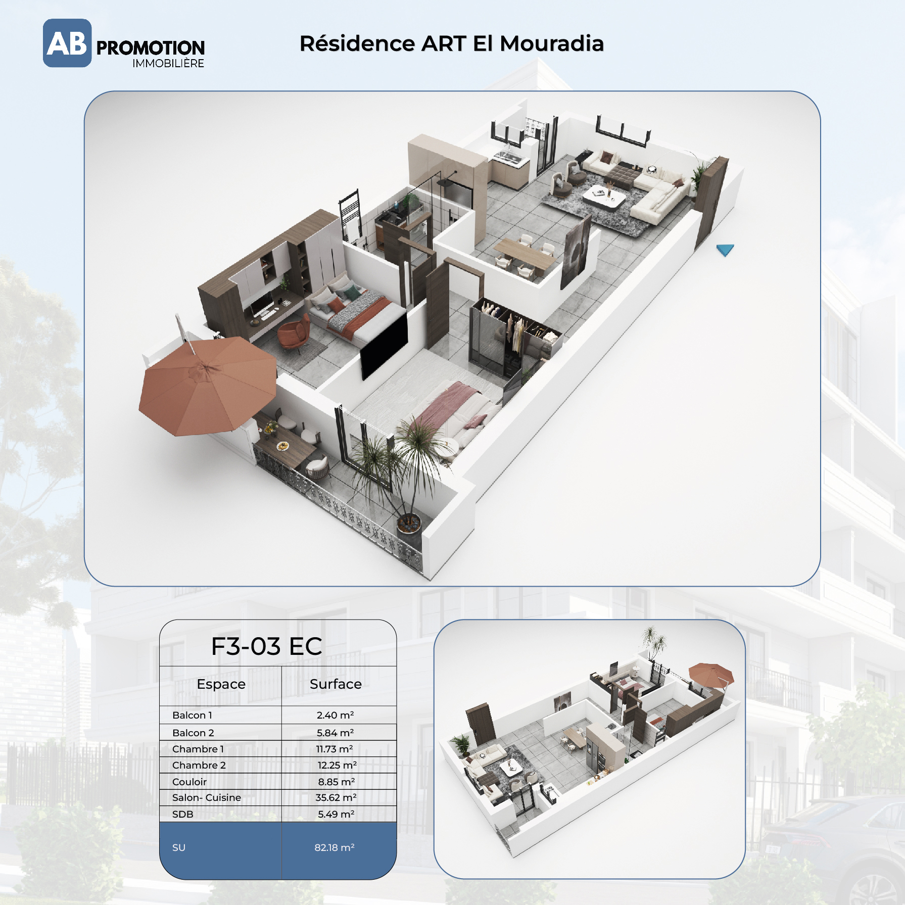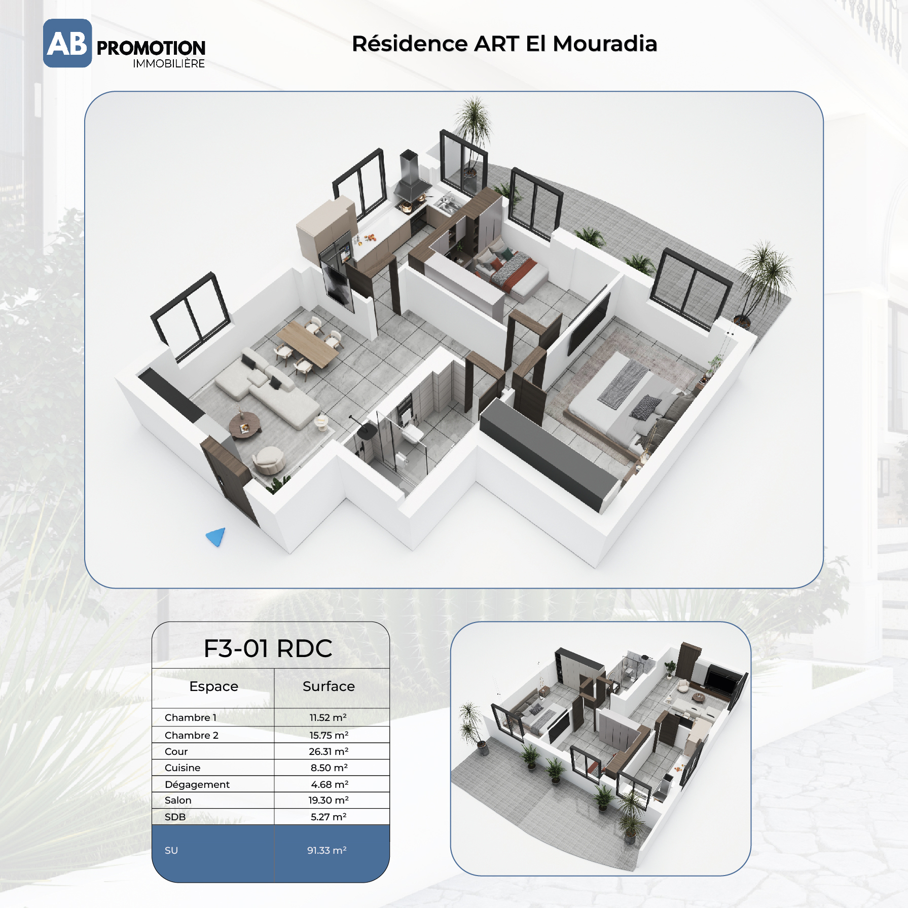 Le plan de vente, aussi appelé axonométrie, space planning ou perspective en coupe d’intérieur, remplace les plans 2D traditionnels en offrant une projection réaliste et détaillée des espaces. Cet outil moderne permet une vision globale de l’intérieur d’un bien immobilier, idéal pour une communication claire et engageante.
